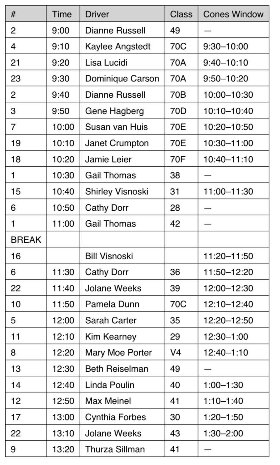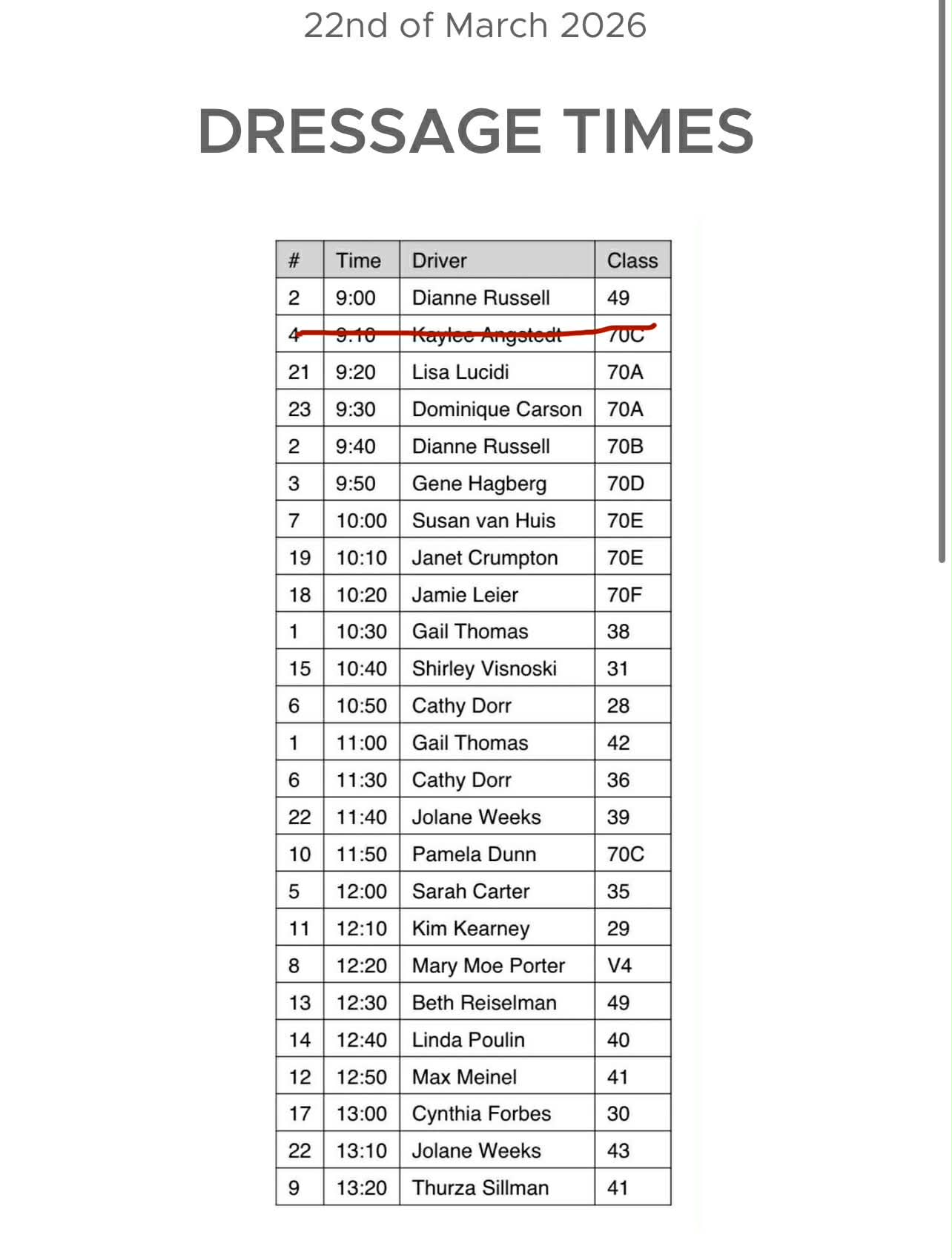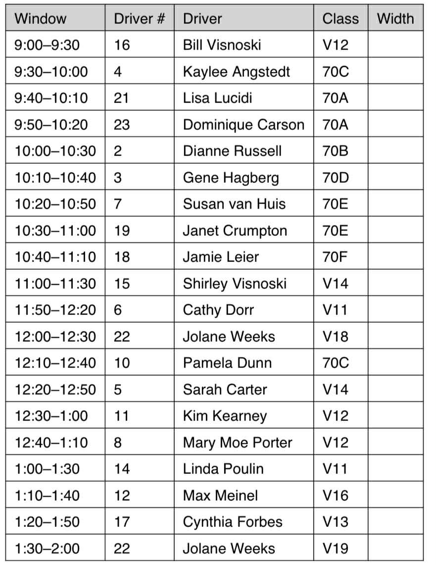 DRESSAGE & CONES START WINDOW TIMES